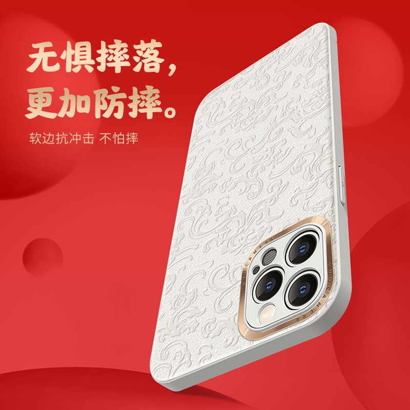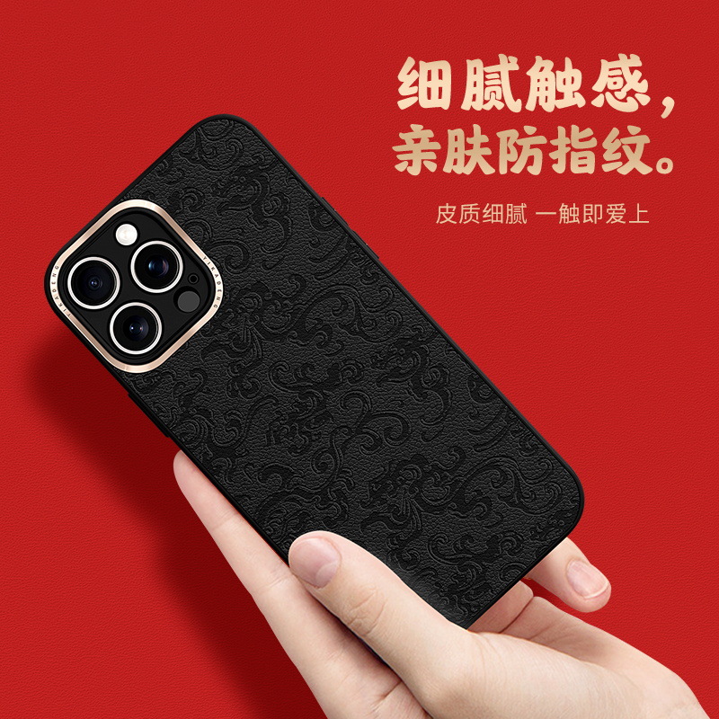 合金镜圈轻薄16pro适用苹果15promax手机壳iPhone14pro素皮纹压印套13pm新年红黑12por男女11p硅胶防摔中国风