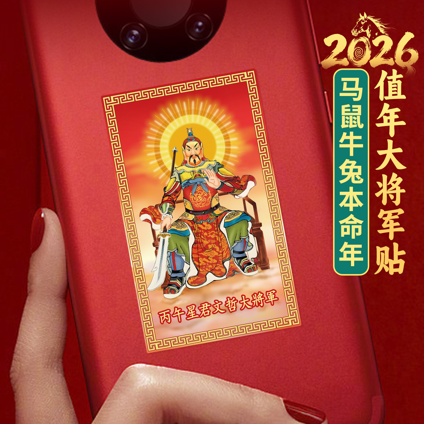 2026年太岁文哲大将军手机贴纸金卡生肖鼠属鼠人化符后壳背面画像