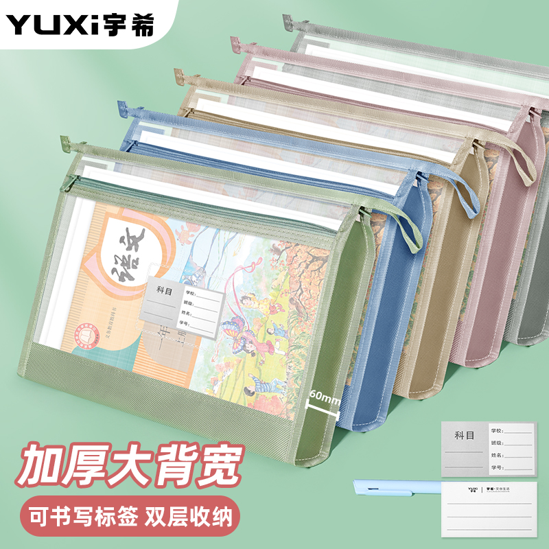 学科科目分类文件袋拉链式双层大容量小学生用资料书本课本分科书袋试卷收纳袋学生装卷子作业袋子A4透明网纱
