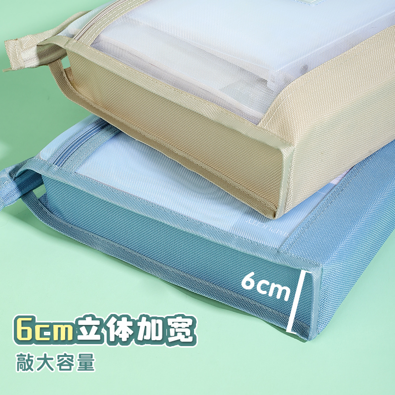 A4双层科目分类袋透明网纱大容量文件收纳袋拉链式小学生初中生专用手提书袋高中生试卷学科资料书本作业袋子