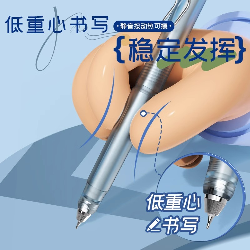 晨光K6901静音热可擦按动中性笔ST笔尖0.5mm小学生用可擦晶蓝黑色