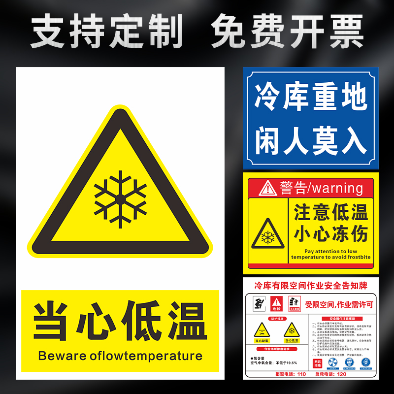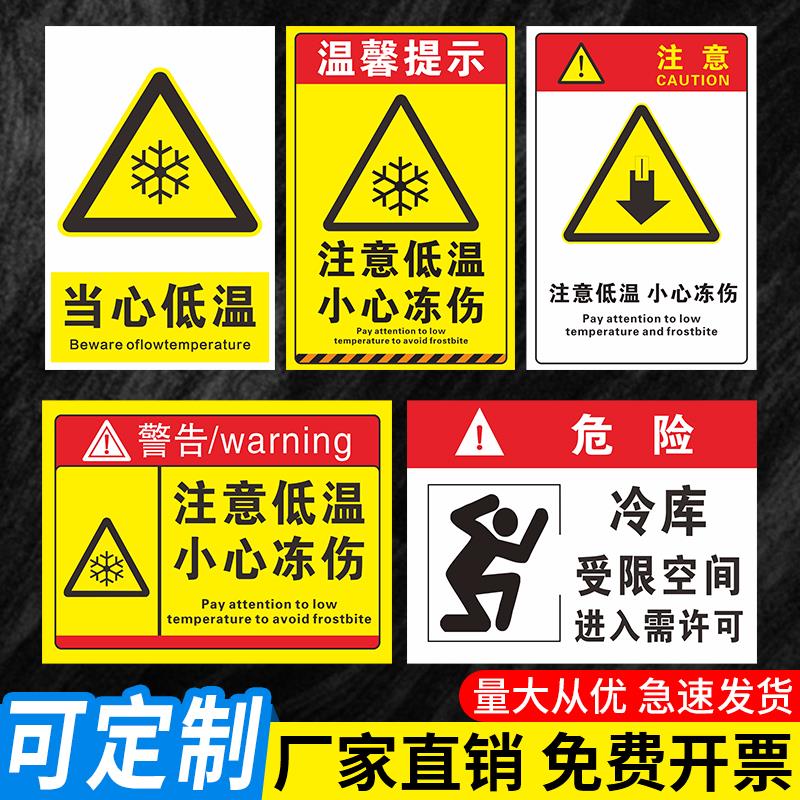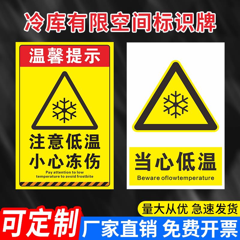 冷库安全标识牌冷库重地闲人莫入当心低温警示牌冷库有限空间安全作业告知牌小心冻伤警告标志 可定制