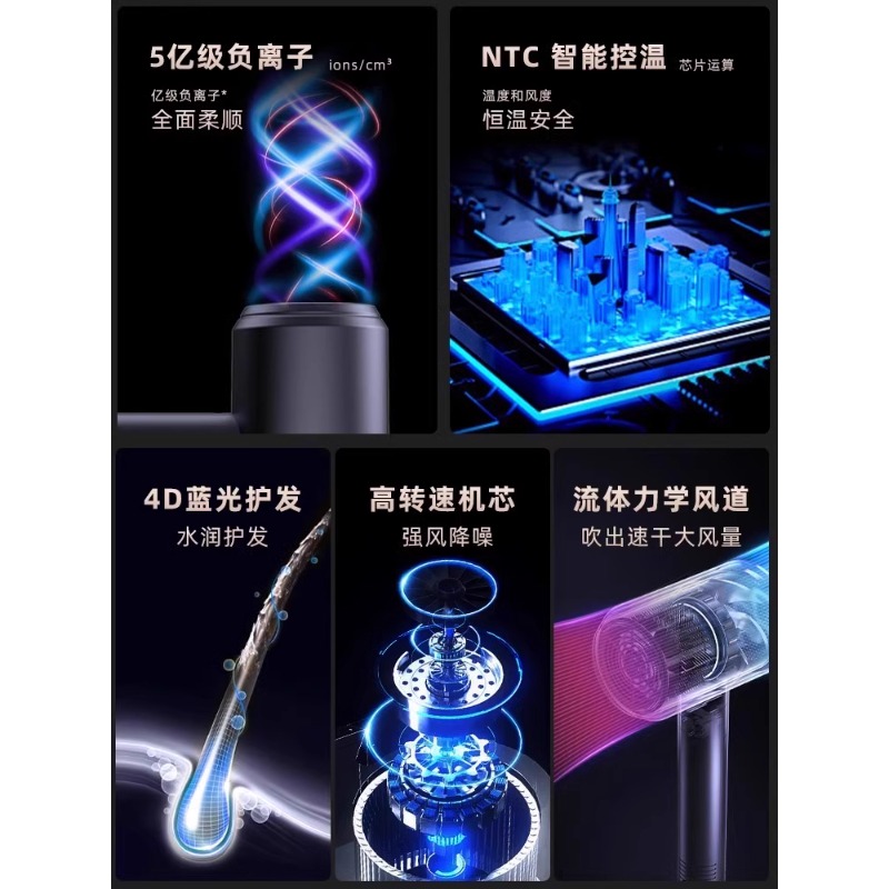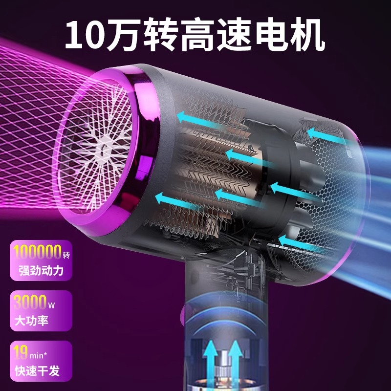 高速吹风机家用负离子护发大风力中空无叶速干降噪电吹风筒华强北