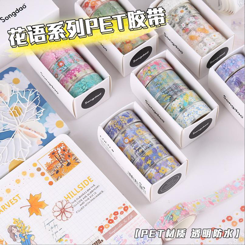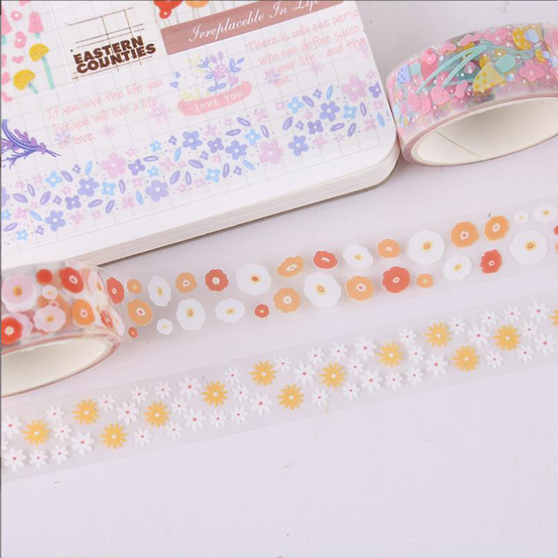 防水透明胶带胶布胶条胶卷胶卷PET文具用品手账贴纸小花可爱清新