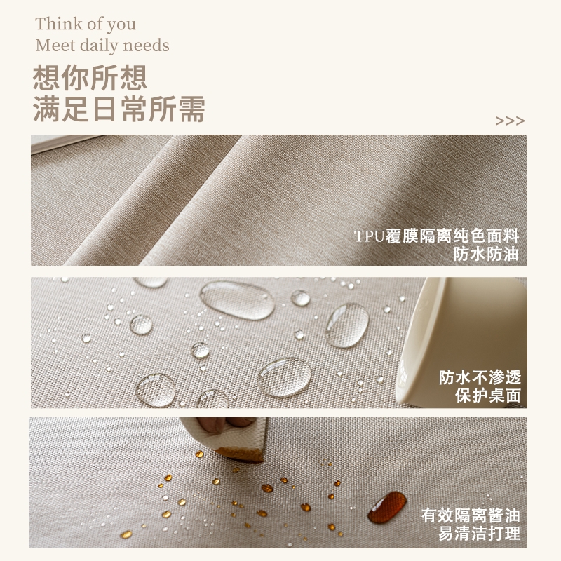 ins风茶几桌布防水防油款免洗餐桌布纯色布棉麻长方形床头柜桌子