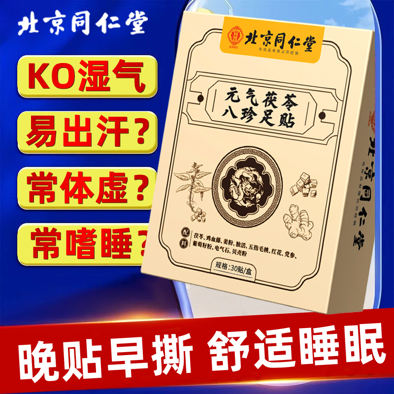 北京同仁堂气茯元苓八珍足贴男女通用艾草脚底养生睡眠排湿寒正品