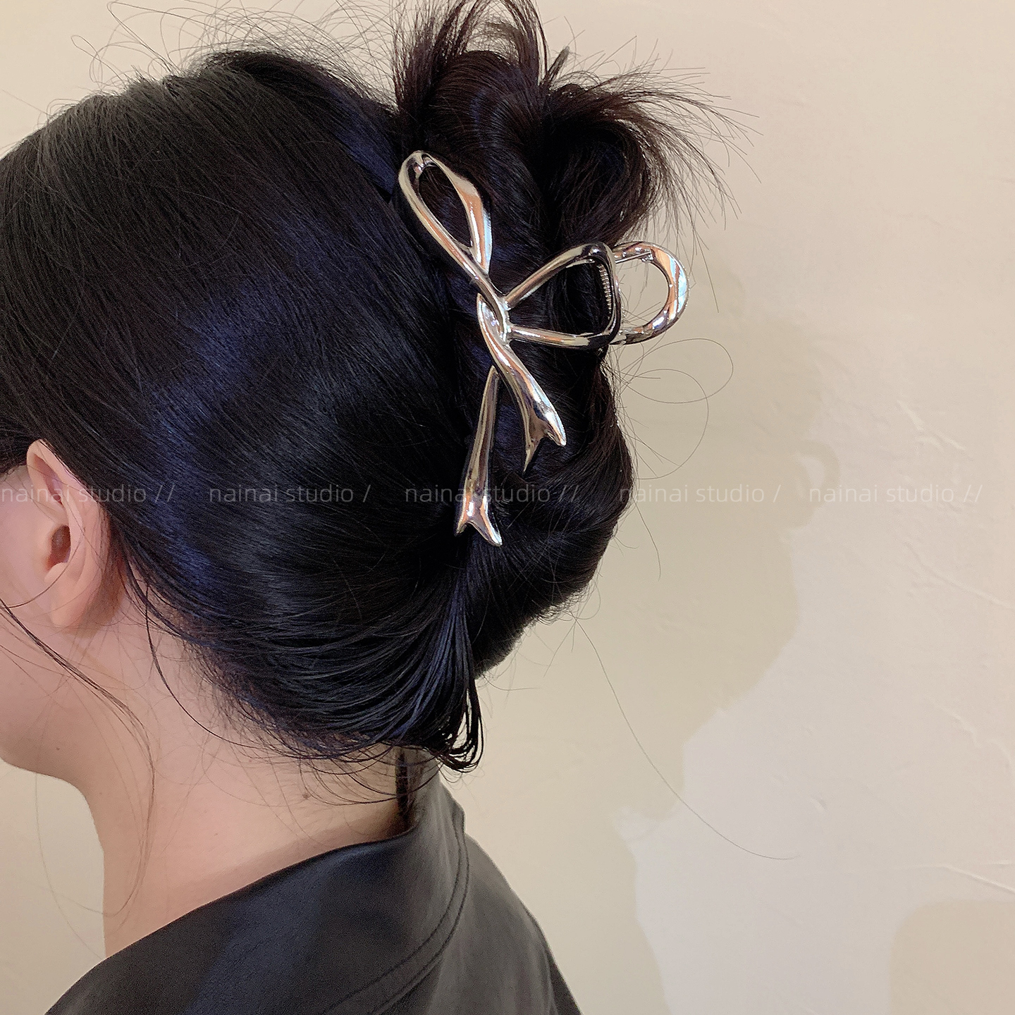 银色金属抓夹~冷淡风蝴蝶结南瓜后脑勺盘发鲨鱼夹发夹小众发饰女A