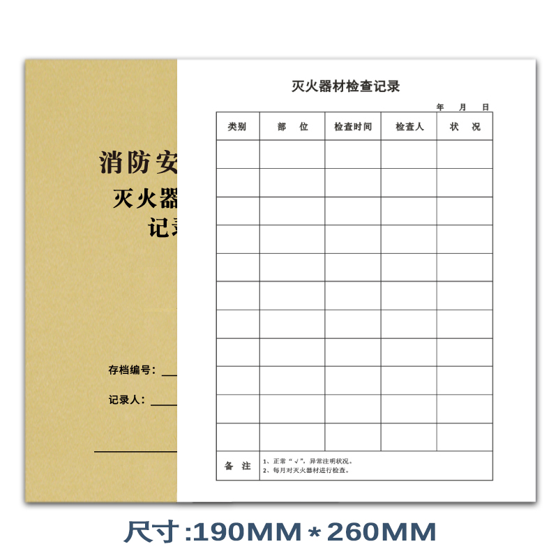 灭火器检查记录表灭火器材检查登记表消防安全台账消防器材检查登记本记录表消防台账