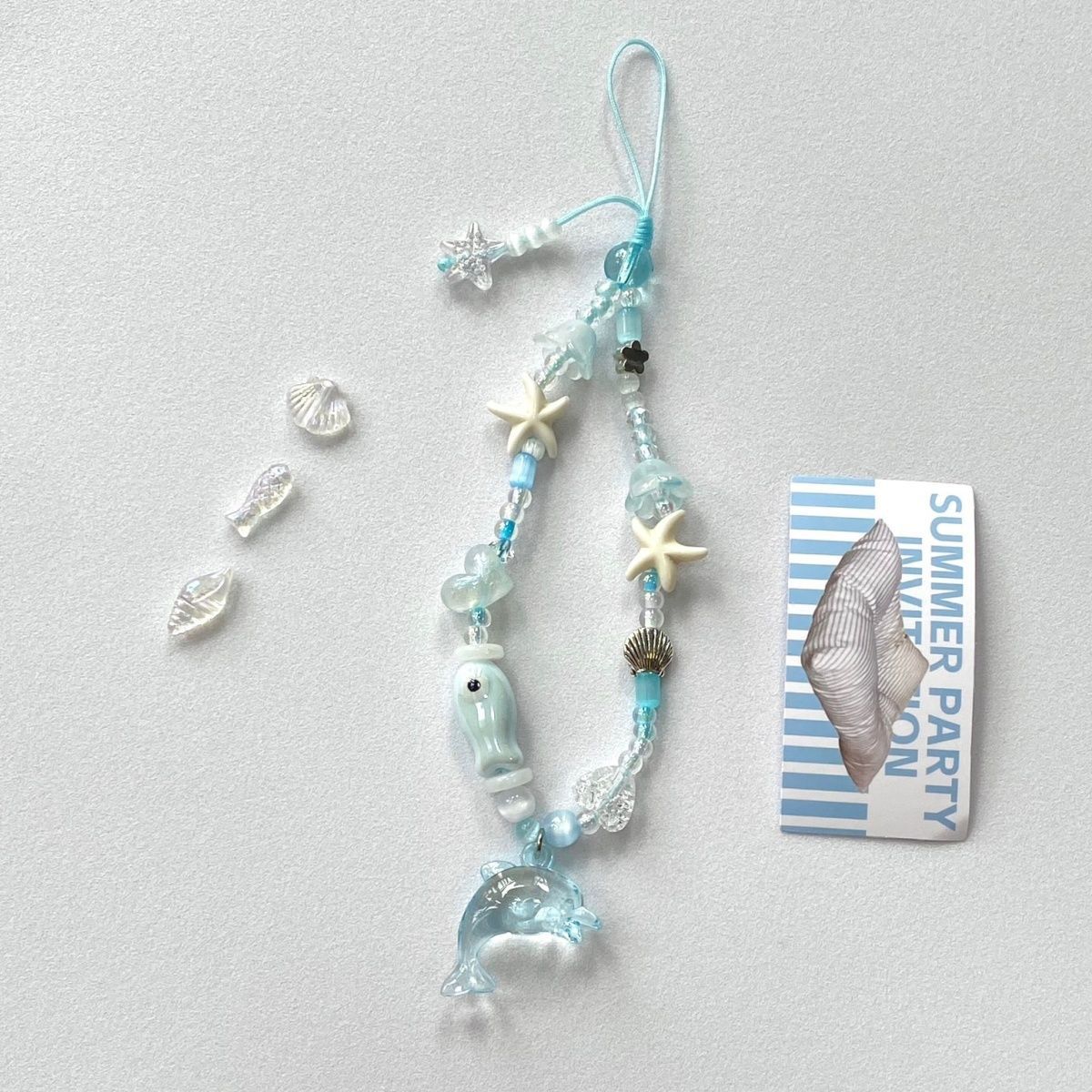 ins海风小清新海豚手机壳链条贝壳配件diy手工串珠ccd相机挂饰女