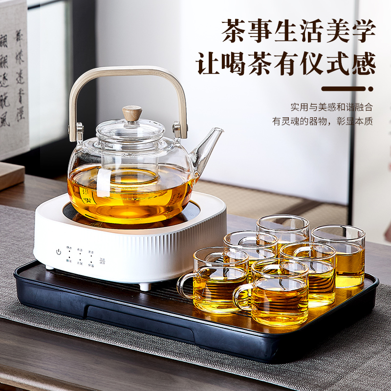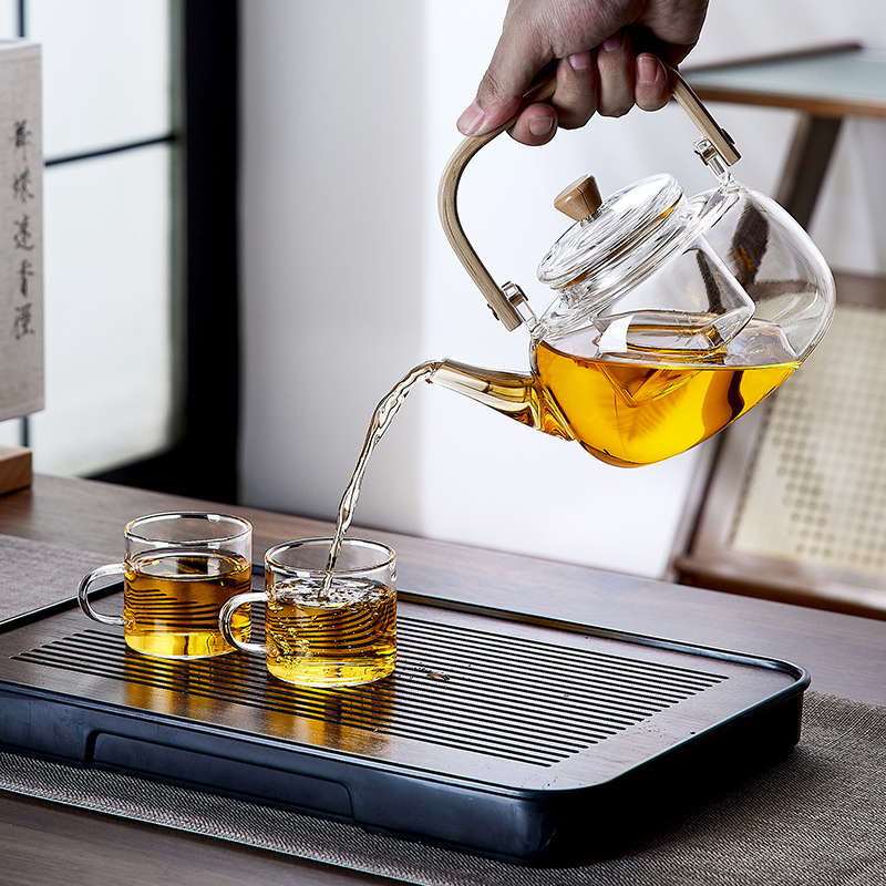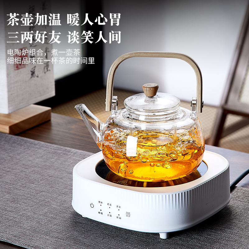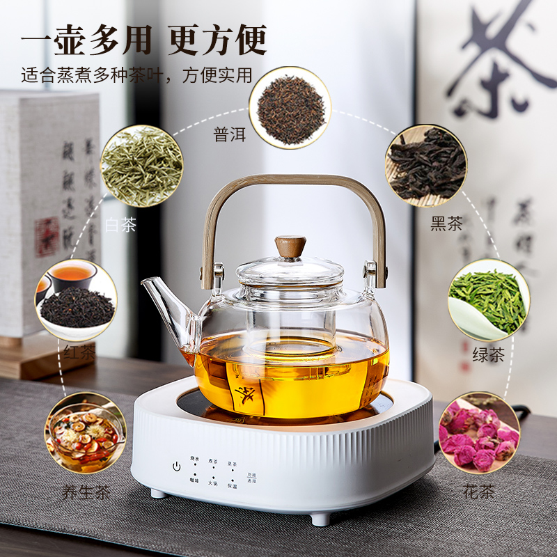 青苹果煮茶壶玻璃烧水泡茶壶电陶炉耐高温家用花茶壶提梁壶蒸茶器