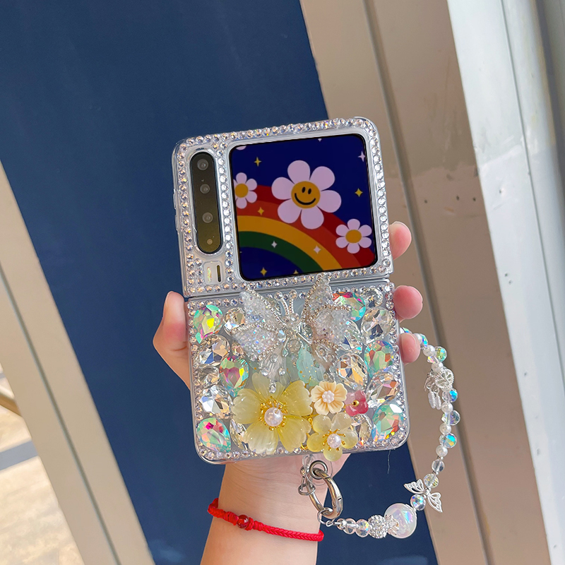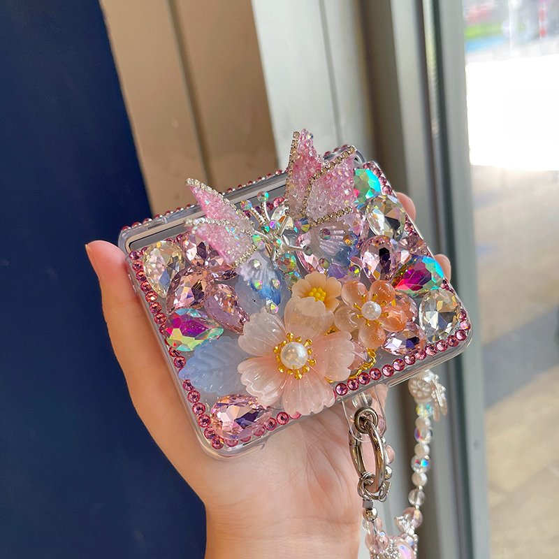 会动的水钻蝴蝶适用华为purax手机壳小米MIX Flip2折叠屏P50pocket创意Nova三星zflip6/7FE女荣耀magicvflip2