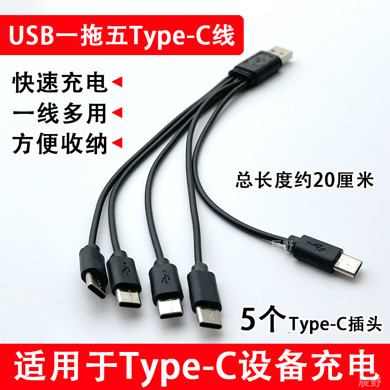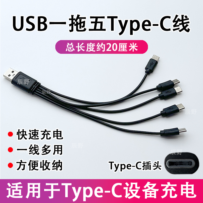 一拖五充电器线5个Type-C多口冲电线多头数据线1A小功率小电器usb