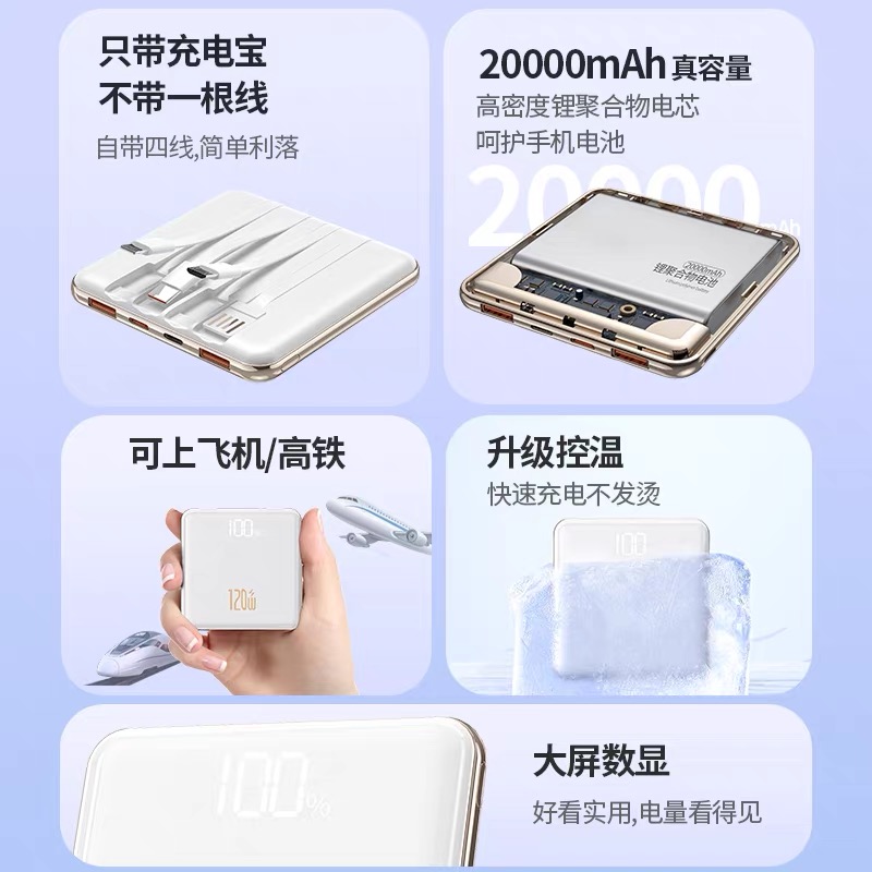 【国家3C认证】2025新款超级快充电宝超大容量20000毫安超薄小巧便携自带线适用华为苹果专用官方正品旗舰店