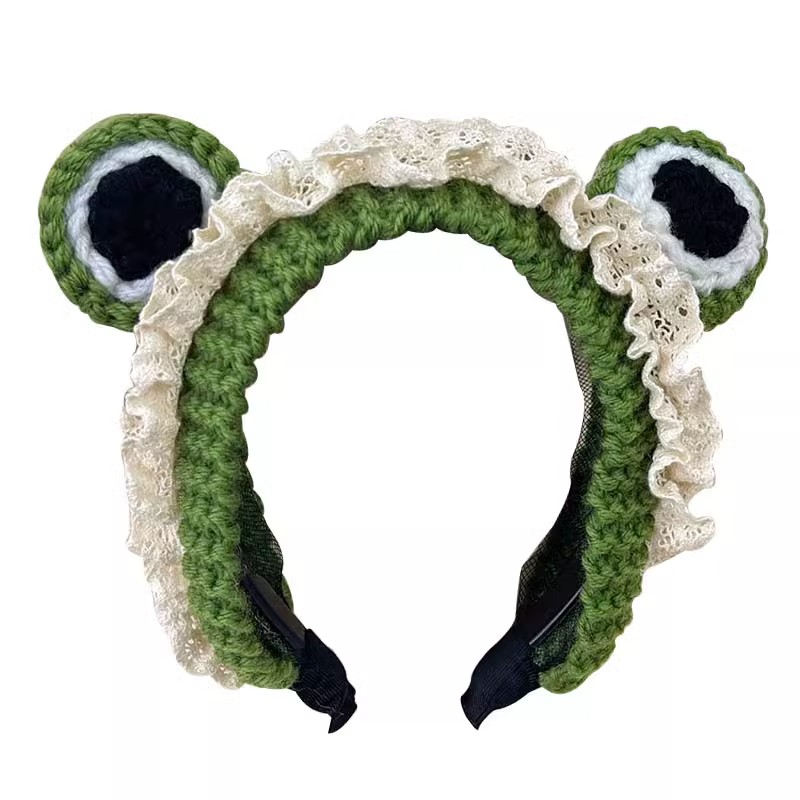 大眼睛青蛙发箍女洗脸可爱毛线针织头箍发卡防滑压发甜美头饰法式