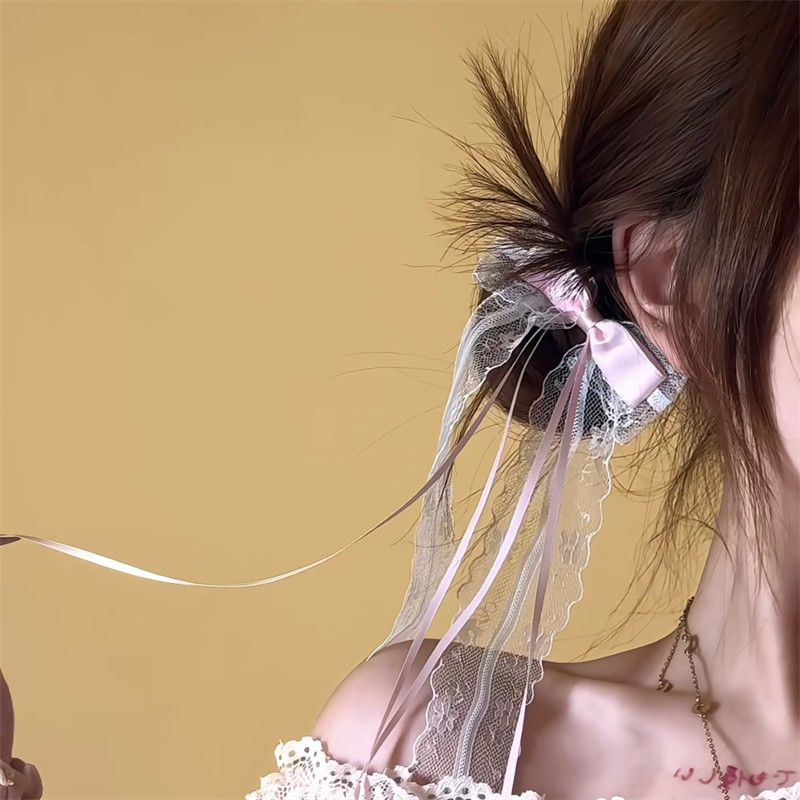 法式气质蝴蝶结嫩粉印花蕾丝飘带发夹女大号后脑勺弹簧夹发卡发饰
