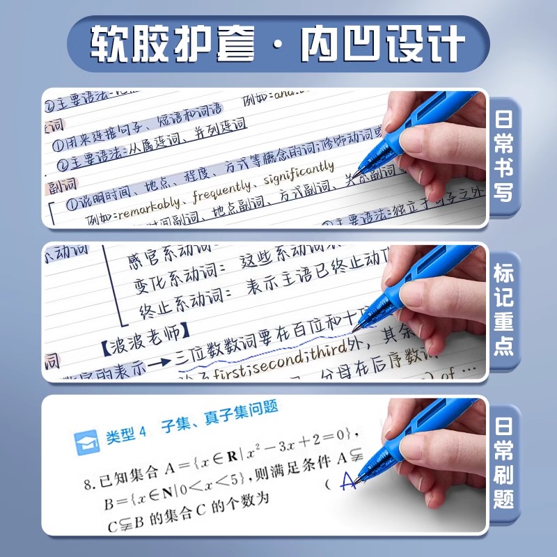 ST刷题笔高颜值按动中性笔圆珠笔黑色水笔小学生专用考试0.5速干碳素笔水性黑笔按压式做笔记签字笔非按斤卖