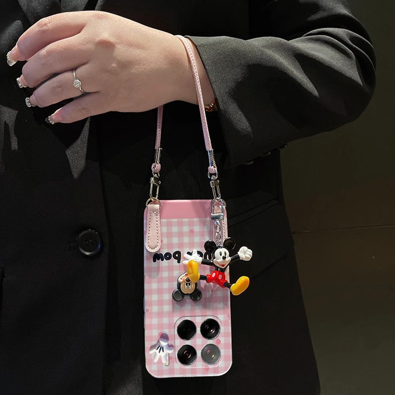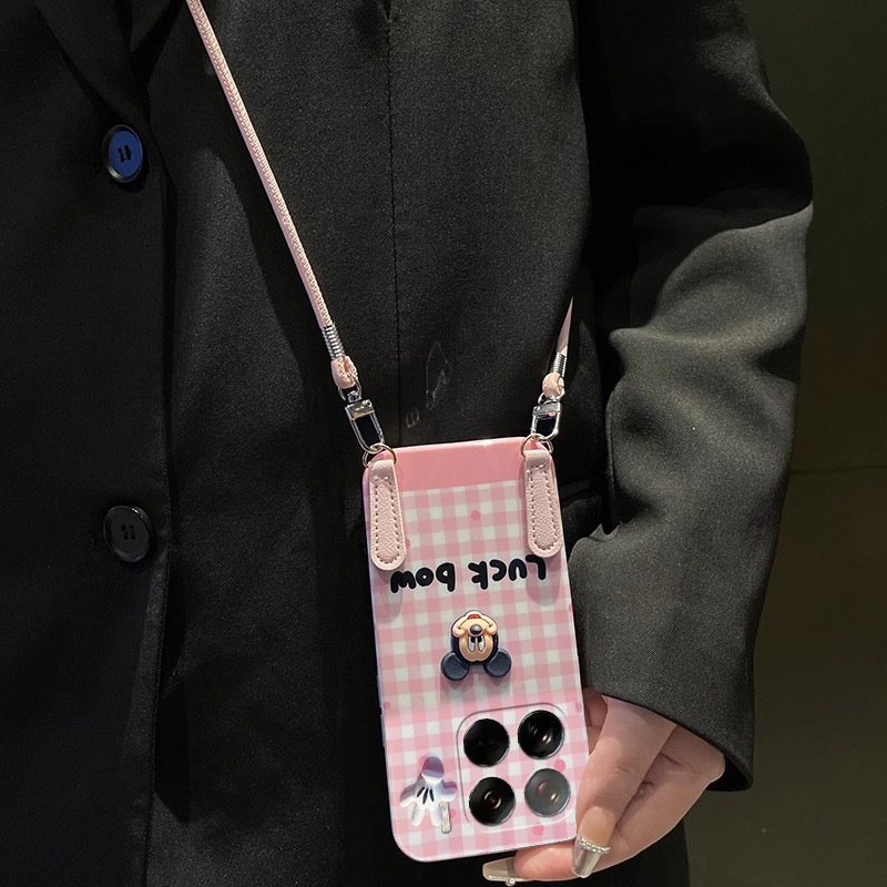 适用小米15ultra手机壳14pro可斜挎13x粉色12s格纹11卡通10立体9手掌8米奇6x带civi4挂坠mix4挂绳mi格子硅胶p