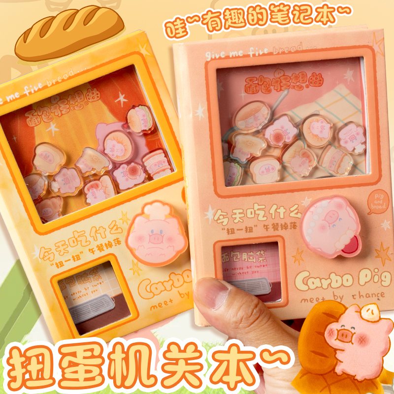 微焦小猪扭蛋机本可爱女孩扭蛋机关本创意解压卡皮巴拉小本子口袋本高颜值记事本迷你便携手账本儿童玩具潮本