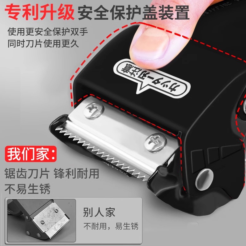 加厚金属铁质胶带器5CM 6CM胶布封箱机透明胶带切割器封箱器大号胶带机物流打包器自动手握式升级黑色打包器1