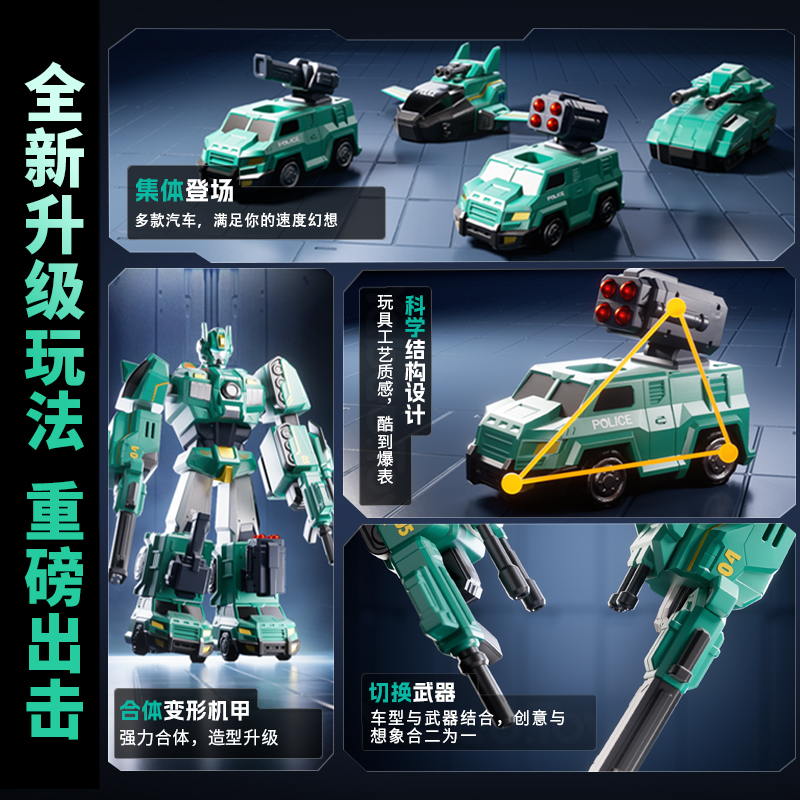 百变磁吸机器人拼工程军事车开发智力动脑变形儿童益智6玩具男孩3