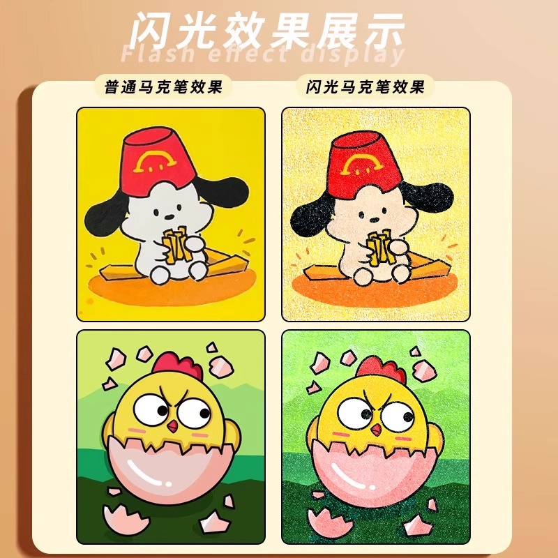 安格尔闪光马克笔笔荧光带闪粉闪闪荧光笔闪粉水彩笔记号笔珠光绘画亮片彩笔儿童学生专用彩绘手账笔炫彩笔