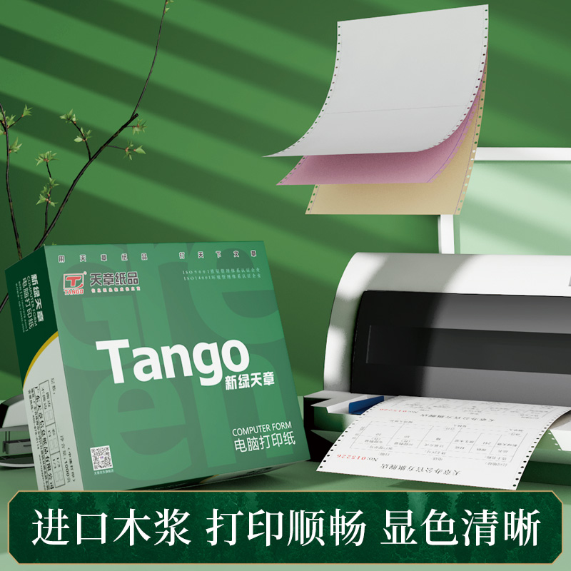 新绿天章241电脑打印纸80列压感纸彩色撕边三联四联二等分清单纸