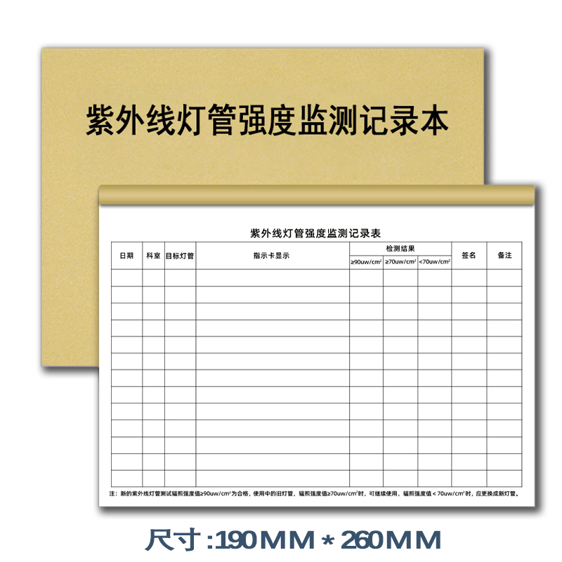 紫外线灯管强度监测记录本紫外线消毒登记簿餐具消毒记录本高压蒸汽灭菌门诊物体表面消毒登记本医疗机构用品