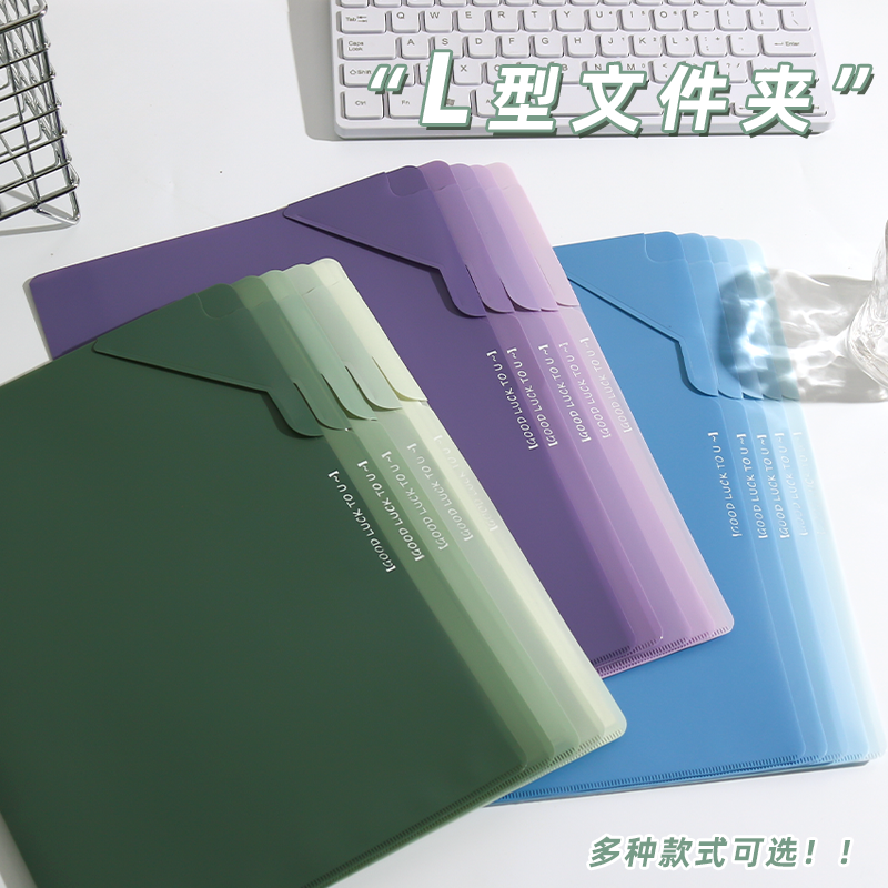 渐变色L型文件夹插页A4收纳夹资料夹学生文件保护套单片夹合同夹