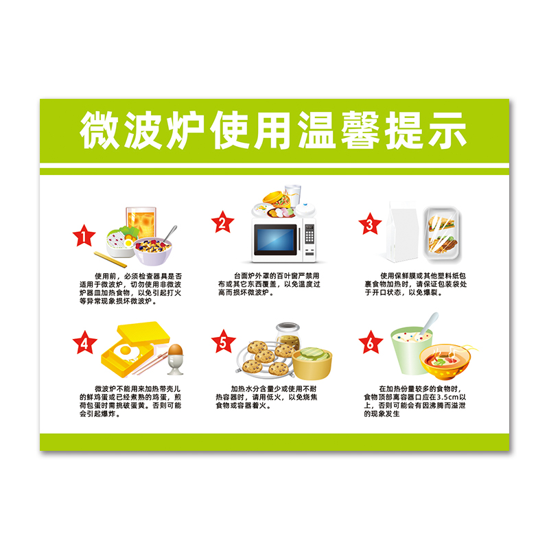 微波炉使用温馨提示注意事项贴纸使用操作步骤说明指示牌不可将以下食品放入微波炉加热注意安全告知牌定制