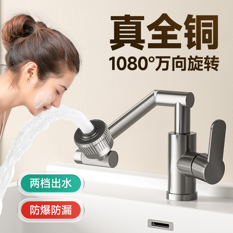 洗脸盆水龙头家用厨房洗手盆卫生间面盆冷热旋转万向机械臂龙头