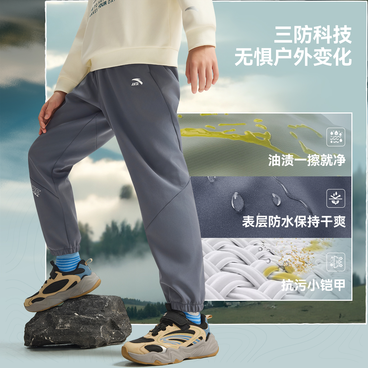 安踏儿童装男童加绒裤子秋冬2025冬季新款三防长裤工装休闲运动裤