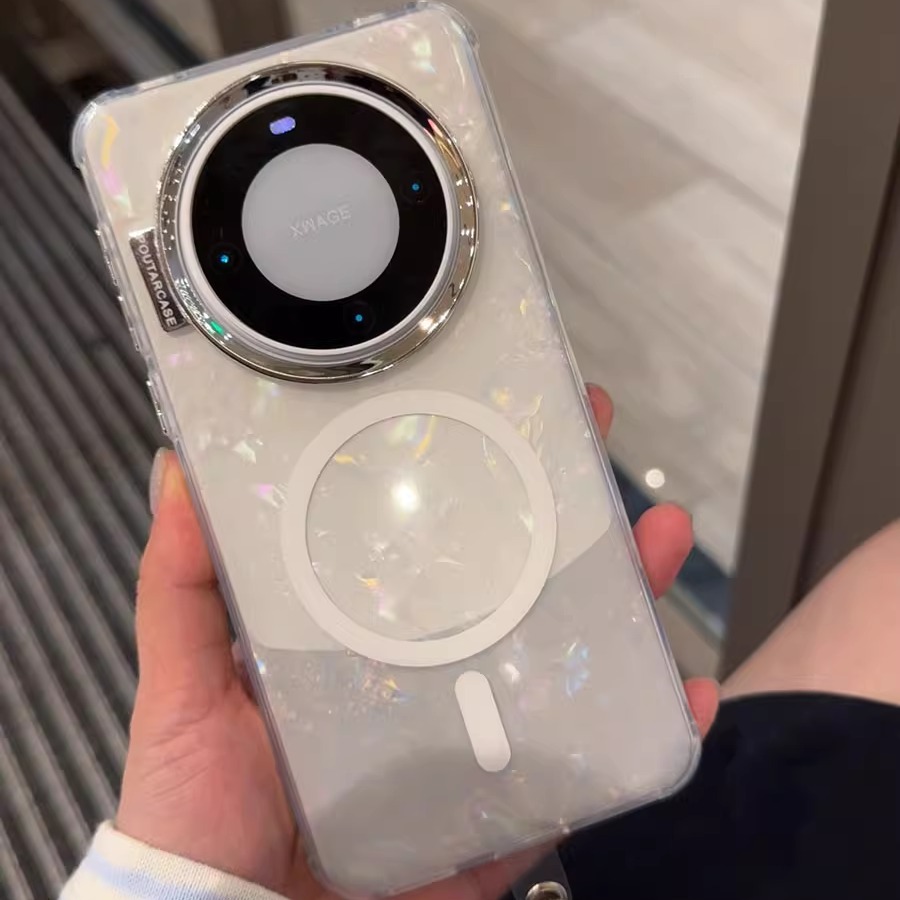 适用华为mate60pro手机壳梦幻ins风贝壳纹mate60简约纯色磁吸支架pura70pro高级感日韩风p60小众网红手链时尚