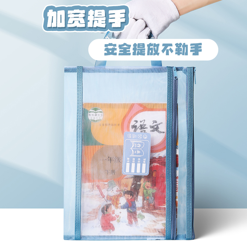 超厚透明网纱学科科目分类文件袋拉链袋双层大容量小学生资料书本课本分科书袋试卷收纳袋学生装卷子袋作业A4