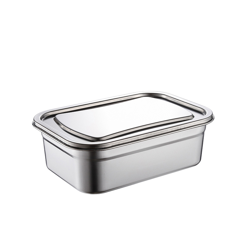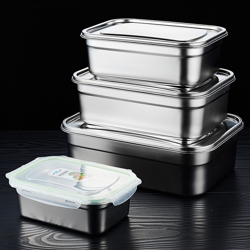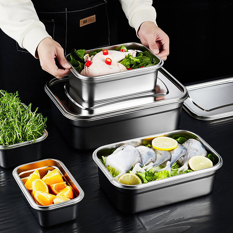304不锈钢保鲜盒厨冰箱食物冷冻储存盒子带盖方盆菜盆大容量饭盒