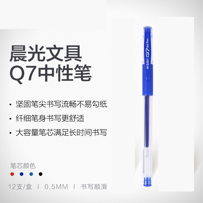 晨光官方中性笔Q7水笔子弹头学生用刷题笔签字笔水性碳素黑笔0.5mm笔芯考试专用教师红色圆珠笔办公用品文具
