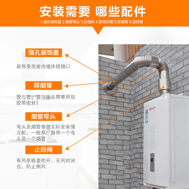 燃气热水器配件大全不锈钢排烟管排气管直径6cm配件弯头60软烟管