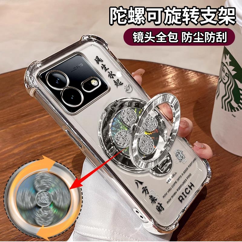 适用IQOONEO8手机壳风生水起电镀四角防摔VIVO高级感简约气囊iQooNeo8Pro解压陀螺支架neo8新款保护套