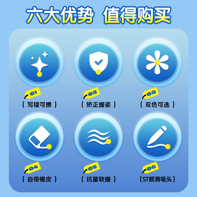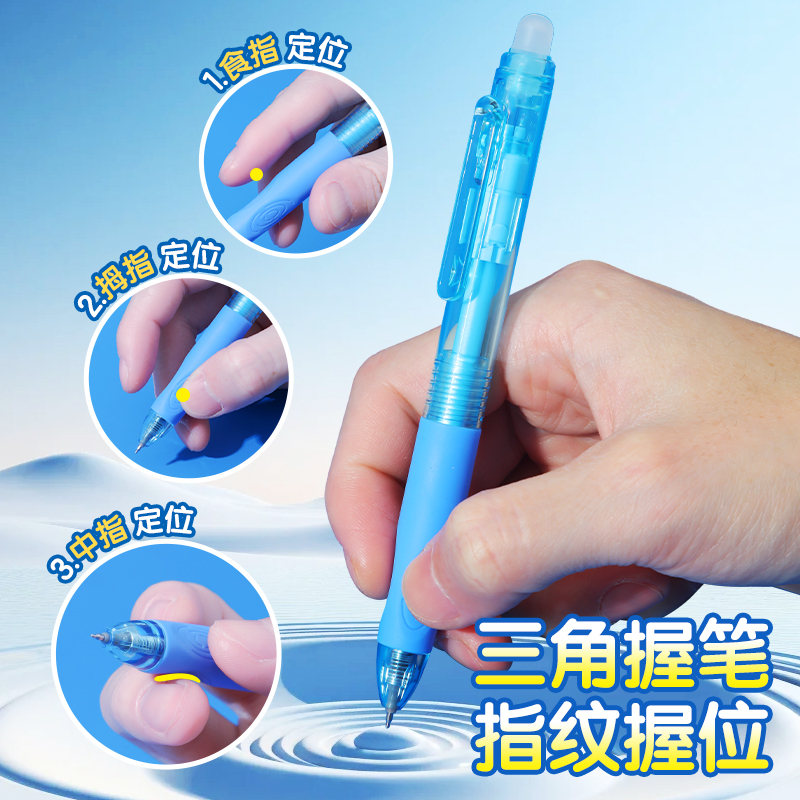 晨光文具优握热可擦中性笔3-5年级专用ST笔尖可擦笔按动式抗菌水笔0.5mm男女小学生专用黑晶蓝色正品中性笔芯