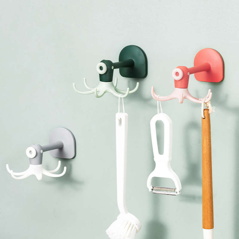 小章鱼旋转挂钩家用厨房免打孔多功能挂架墙壁置物架粘钩收纳神器