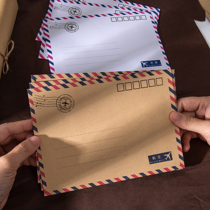 牛皮纸复古欧式航空信封可邮寄加和信纸套装明信片卡片贺卡高级感白色文艺书写儿童可爱5号邮局纸袋