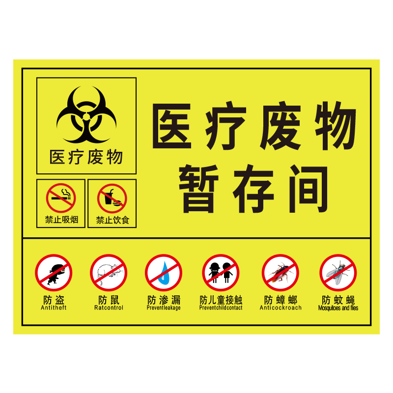 医疗废物暂存点间贴纸标签标识贴暂存处暂存间处置流程图仓库警示牌新款病理性感染性损伤性垃圾桶废弃物处理