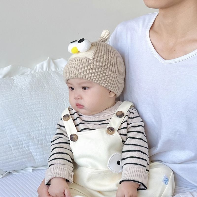 尼多熊宝宝帽子秋冬帽围一体儿童护耳帽保暖婴儿帽冬季加厚毛线帽