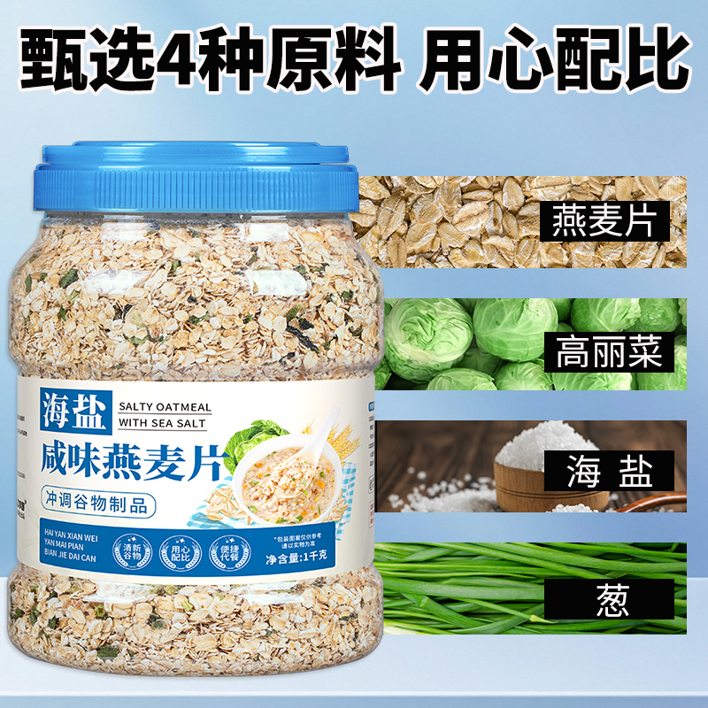海盐咸味燕麦片营养早餐免煮即食无添加速溶适合控体代餐健康