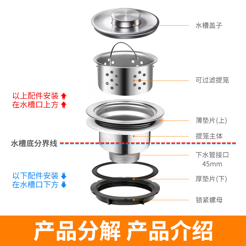 厨房洗菜盆下水器水槽洗碗池下水管套装漏水塞排水配件110下水道