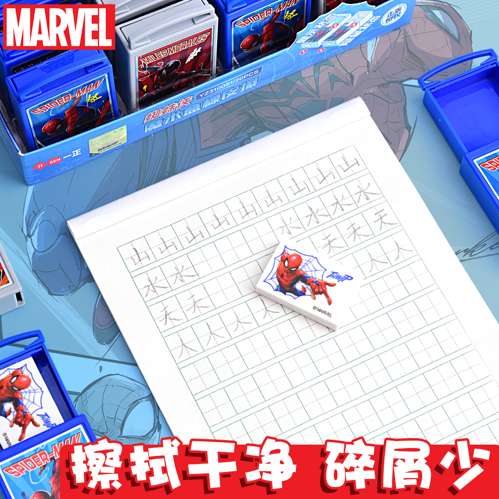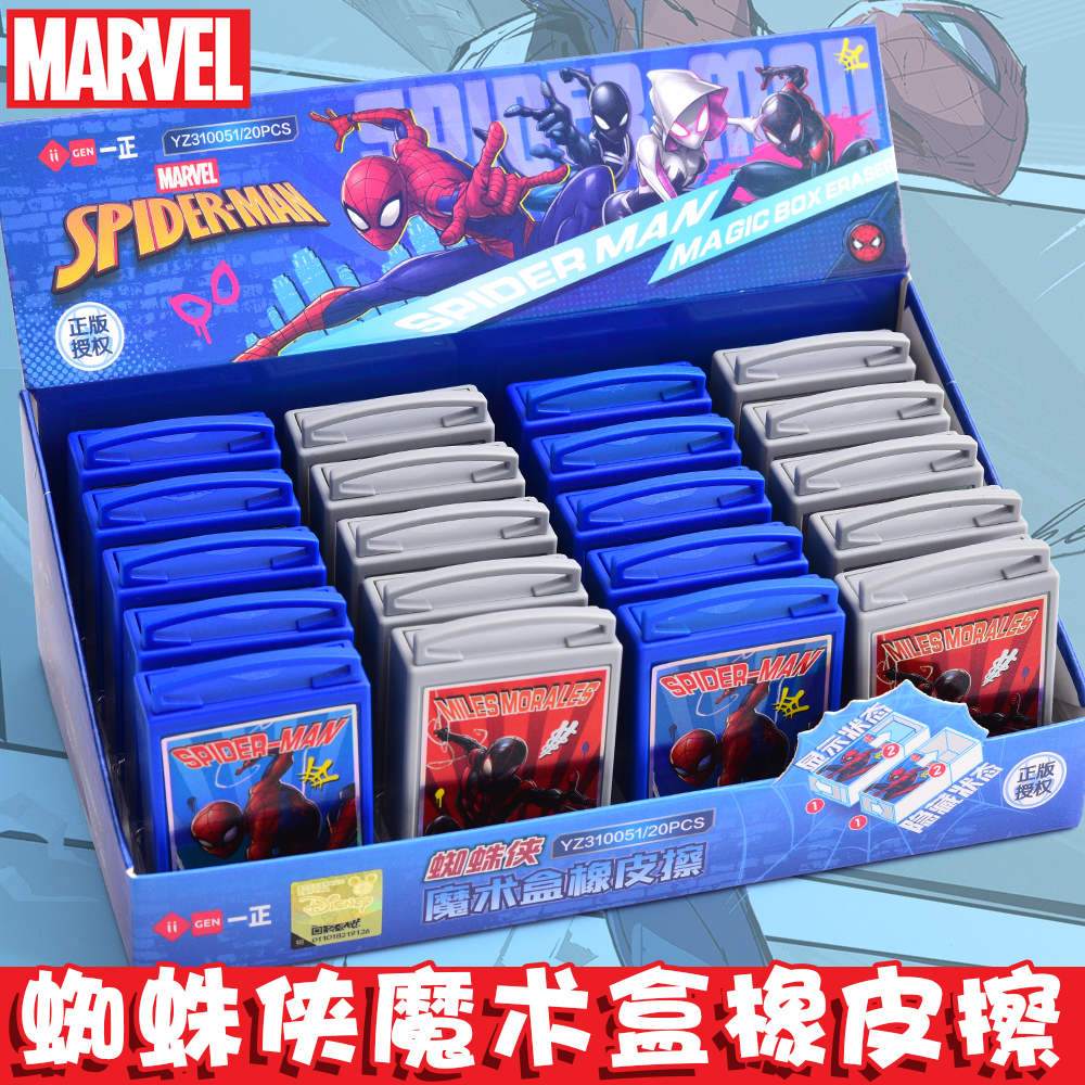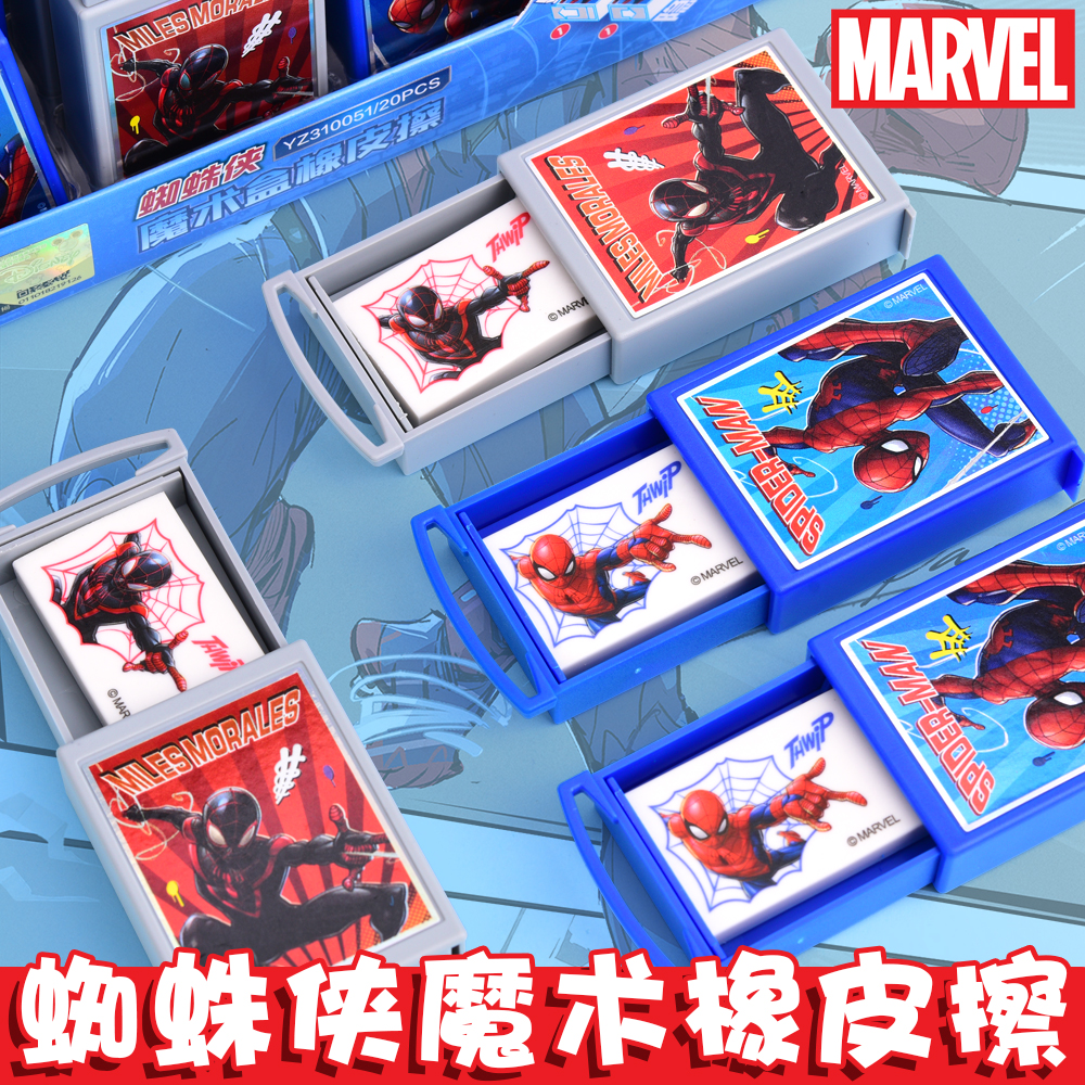 正版蜘蛛侠魔术橡皮擦小学生用少屑干净不易留痕可抽拉便携橡皮擦高颜值男生卡通奖励礼品一二三年级儿童橡皮