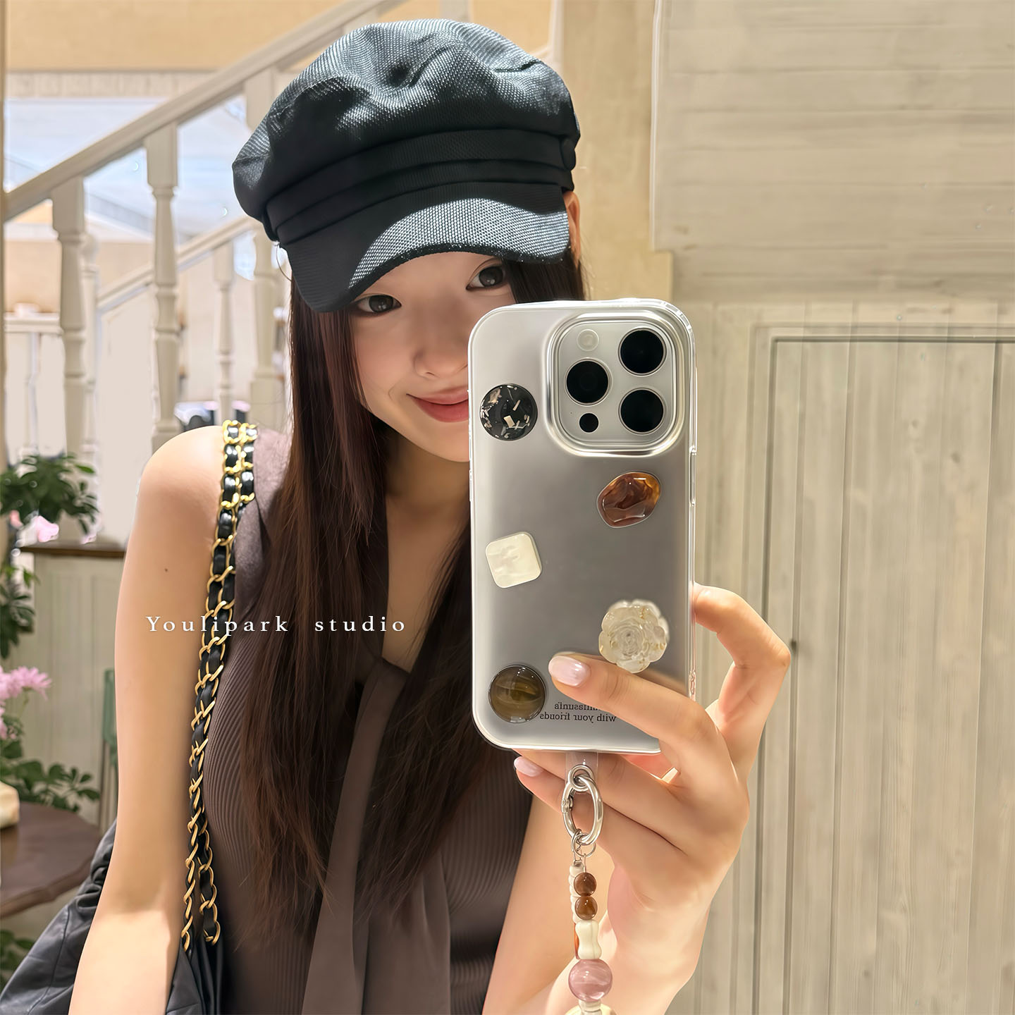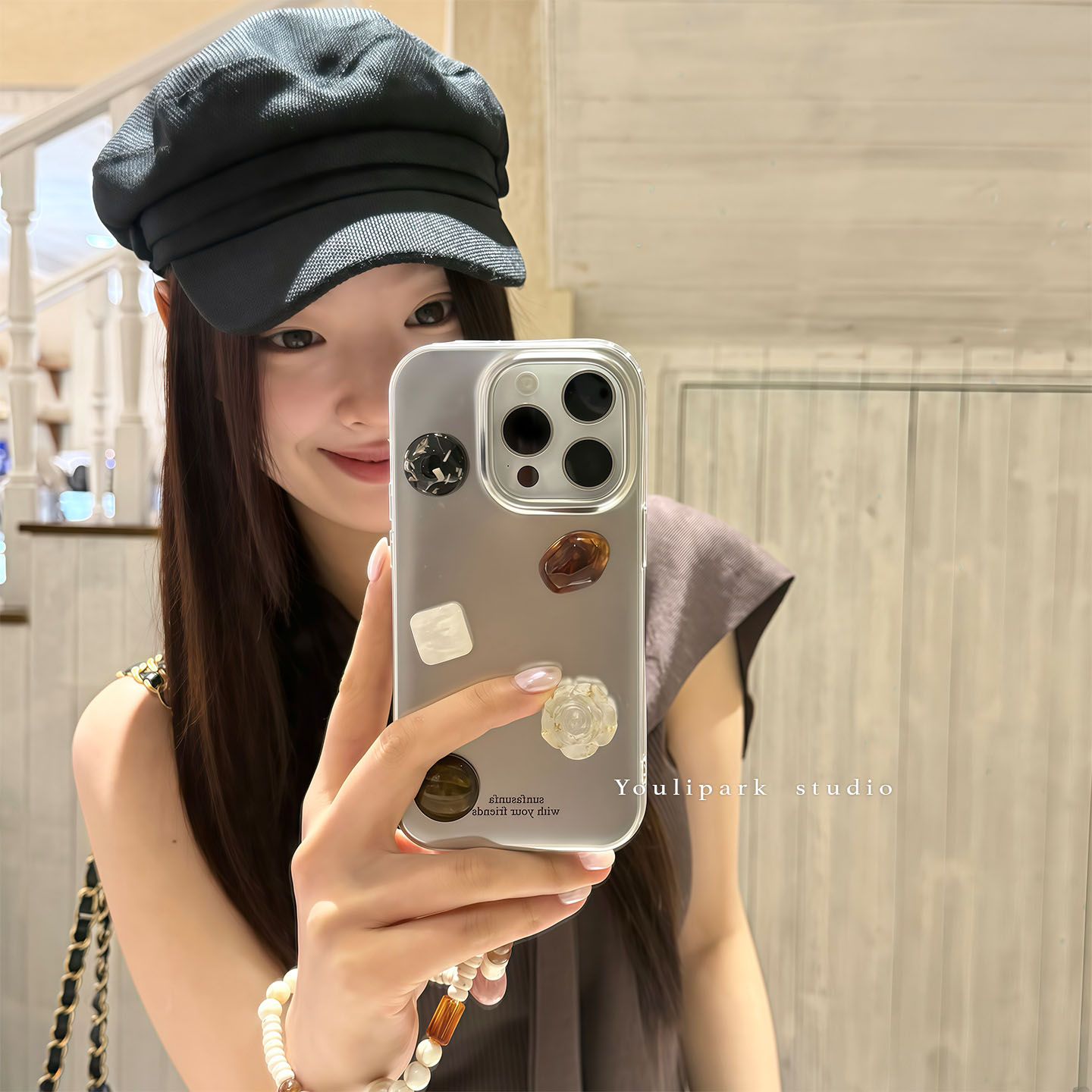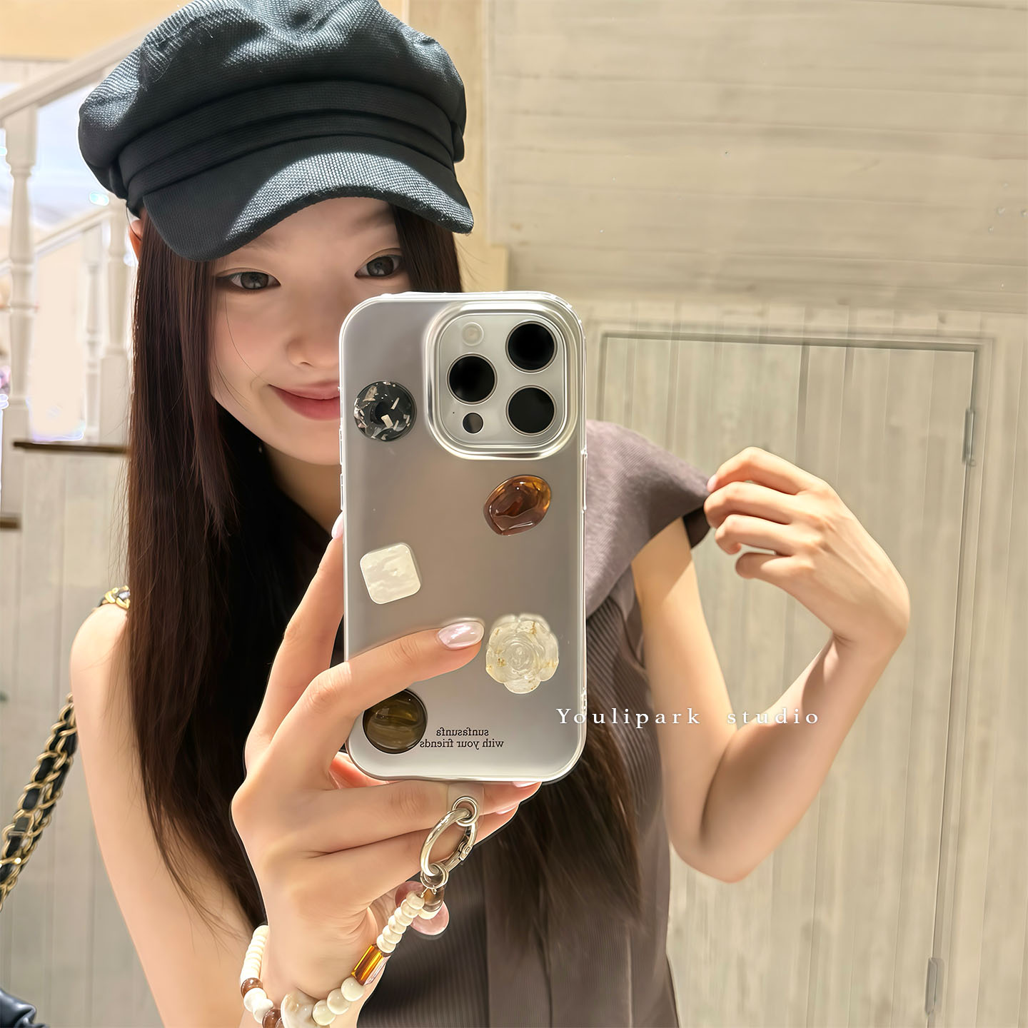 由里公园ins小众高级感立体花朵琥珀宝石15适用17pro苹果17ProMax手机壳iPhone16全包17电镀14Promax保护套女