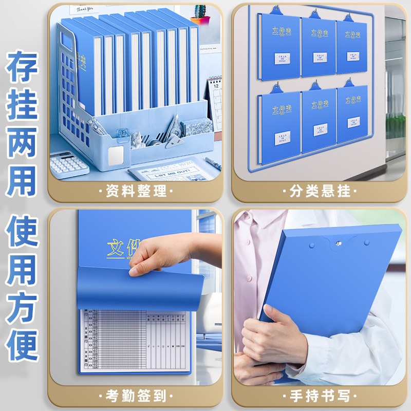 A4可悬挂式文件夹a4板夹竖版吊挂式档案盒办公收纳资料夹人事财务用工厂车间挂墙考勤登记录表夹批发挂钩分类