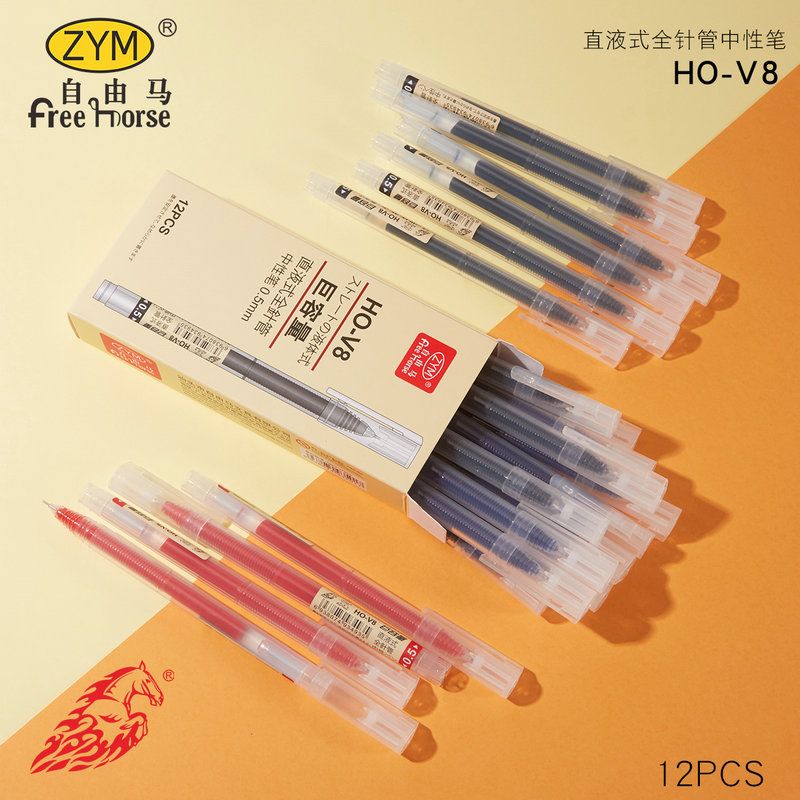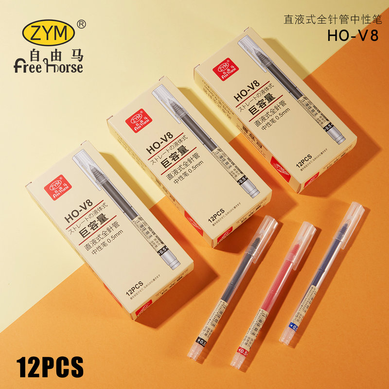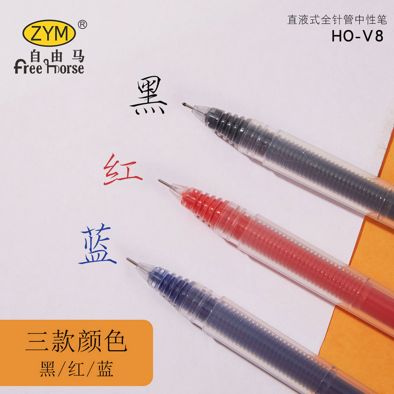 自由马V8大容量签字笔超滑耐写中性笔 极细0.5mm针管黑色水笔包邮
