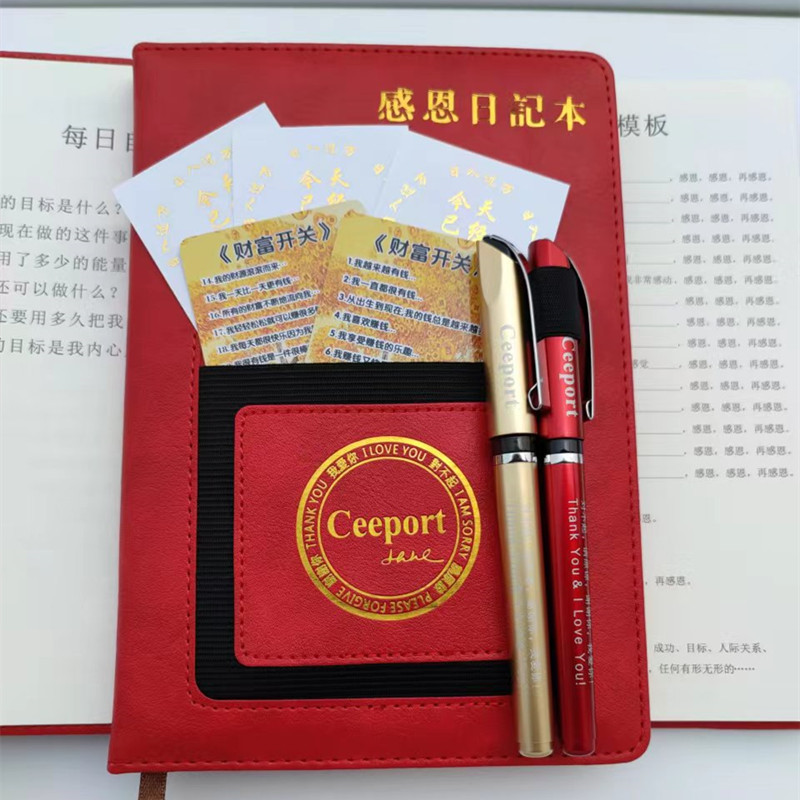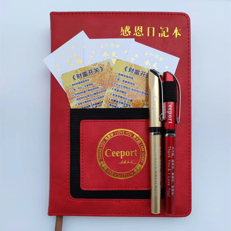 抖音同款红色感恩日记本套装有模板能量笔2支日入过万贴财富开关