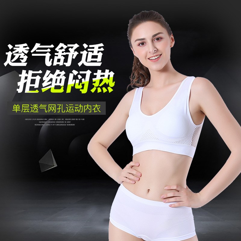 网孔网格透气运动文胸 瑜珈健身大码加肥镂空美背无钢圈内衣
